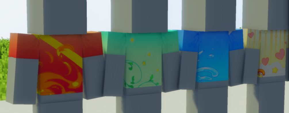 Four tshirts with unique designs specifically for these shirts. The design covers the entirety of the shirt. Was a fun but difficult one to get sitting right.