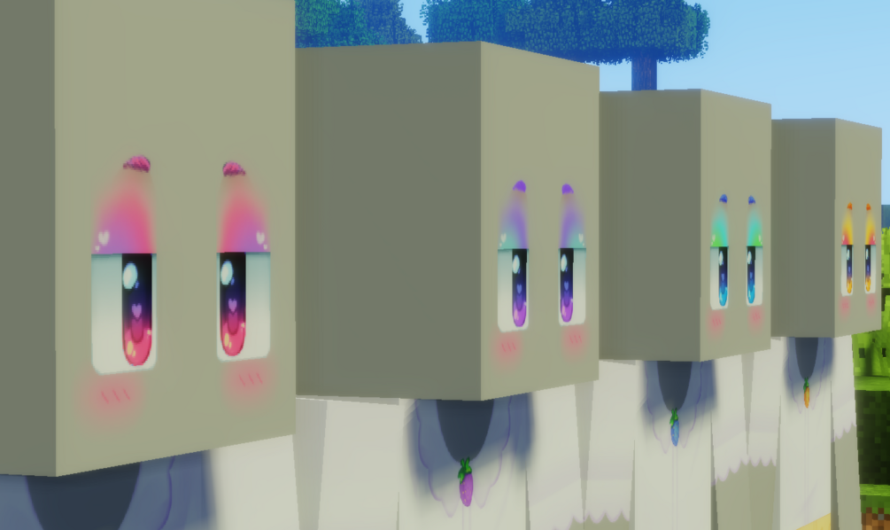 Another Minecraft outfit, this one comes in various colours, a total of about 13 different items. New shoes, eyes, make up including blush. New eyebrows, shorts, frilly top, socks, a belt and a strawberry hairclip and pin.